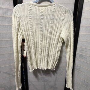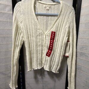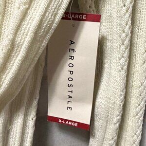 Aeropostale Pointelle Knit Cardigan Sweater Cream White Button V-Neck XL NWT