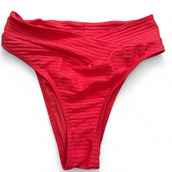 Aeropostale Red Ribbed High-Cut Bikini Bottom