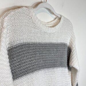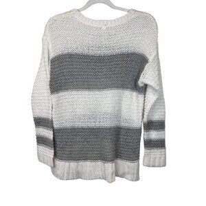 Aeropostale SP Womens White Grey Striped Open Knit Sweater Size Petite Small