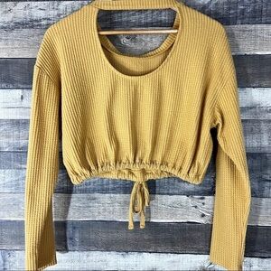 Recent 2019 Style, Fall, Autumn, Winter, Mustard Yellow, Cropped, Aesthetic, Sweater Weather, Snow Days, Casual, Lounge, Lazy, Momwear, Cozy, Comfy, Relaxed, Soft, Back Cutout, Tie Detail, Prairie, Boho, Bohemian, Hippie