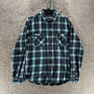 Aeropostale Shirt Adult Medium Blue Gray Flannel Button Up Pockets Preppy Casual