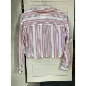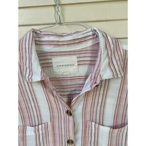 Aeropostale Shirt Cropped Button Down Striped Pink Relaxed Fit Size Small