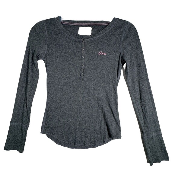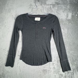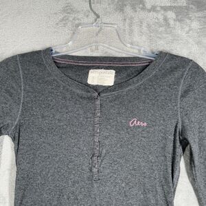 Aeropostale Shirt Juniors Large Gray Pink Logo Henley Neutral Casual Bella Swan
