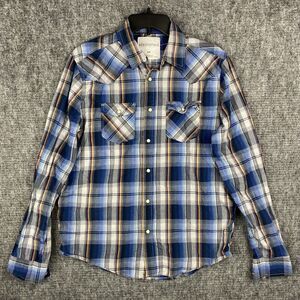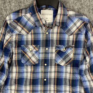 Aeropostale Shirt Mens Medium Plaid Pearl Snaps Western Rodeo Cowboy Farm Chore