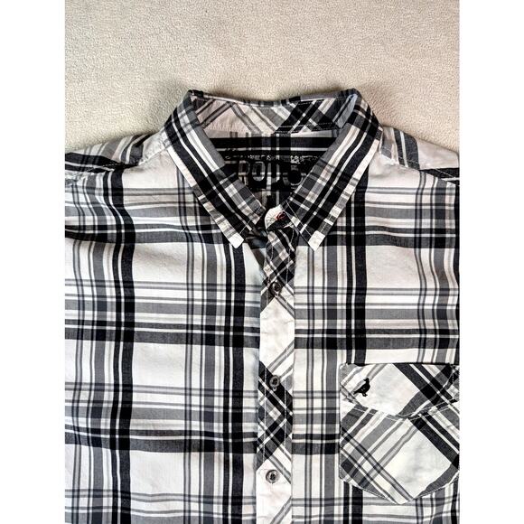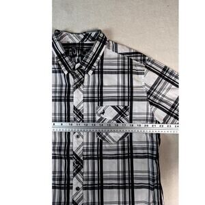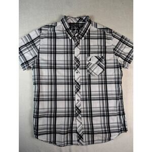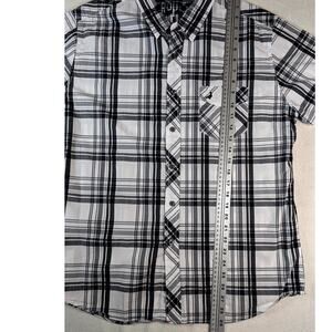 Aeropostale Shirt Men's Short Sleeve Shirt Gray Black Plaid Cotton Button Large