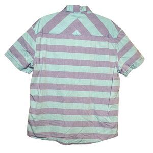 Aeropostale Shirt Mens XL Blue Purple Striped Button Up Short Sleeve Cotton Casual