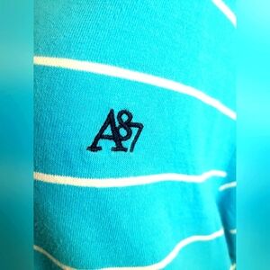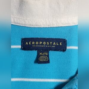 Aeropostale Shirt, Size XL Blue/White Polo Casual Short Sleeve Striped Adult