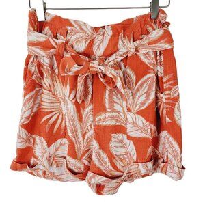 Aeropostale Shorts Tropical Sz Small Paper Bag Waist Coral Rayon Linen Blend