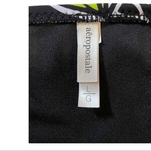 Aeropostale side tie bikini bottom. Black with neon accents outlined in white florals Size Large. Waist 29-32” good preowned condition.