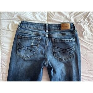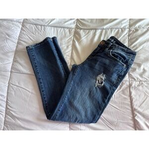 Aeropostale Size 000 Bayla Skinny Crop Jegging blue distressed Jeans, 25" Inseam
