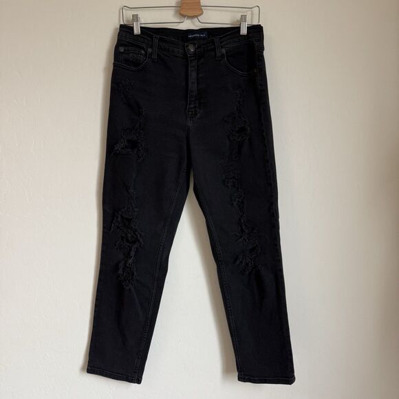 Aeropostale Size 10 High Rise Distressed Stretch Straight Mom Jeans Boho Grunge