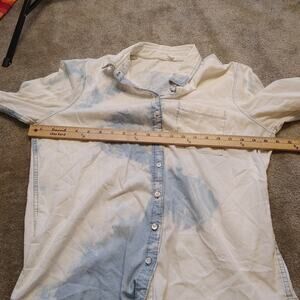 Aeropostale Size Large White Blue Button Up Top Blouse Long Sleeve Soft Comfy