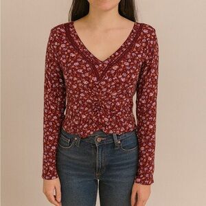 Aeropostale Size Medium Red Floral Bohemian Style Top.
