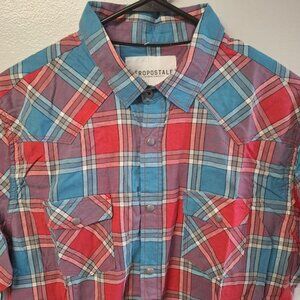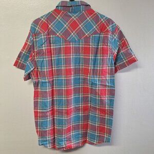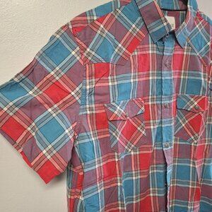 Aeropostale Snap Shirt Plaid Pink Blue Mens Large Short Sleeve Collared