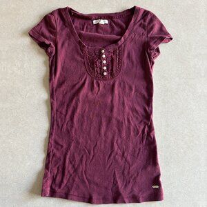 Aeropostale Stretch Ruffle Scoop Neck Henley Tee ALT ASO Elena Gilbert