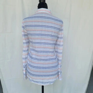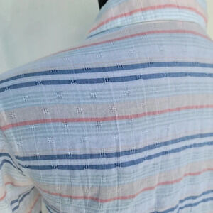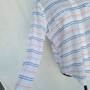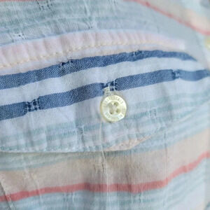 Aeropostale Stripe Button Front Collared Shirt White Blue Peach Lightweight Sz M