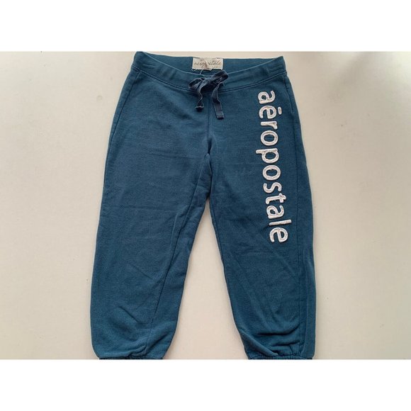 Aeropostale Sport Sweatpants Womens XS Pull On Drawstring Spellout Workout Blue.