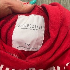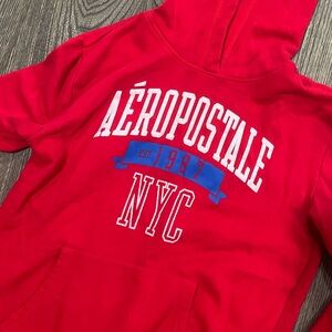 Aeropostale Sweatshirt Hoodie Embroidered Logo Pocket Front Pullover Red Size S