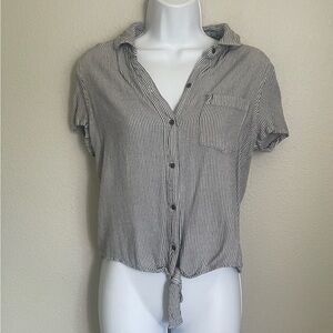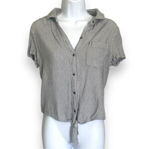 Aeropostale Tie-Front Button-Up Shirt - Blue & White Pinstripe Short SleeveTop