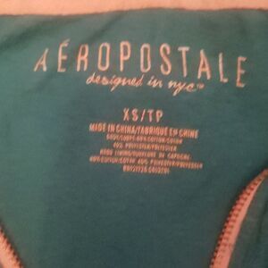 Description: Stay cozy and stylish with this Aeropostale turquoise zip-up hoodie in women's size XS. Features front pockets and a comfortable fit.