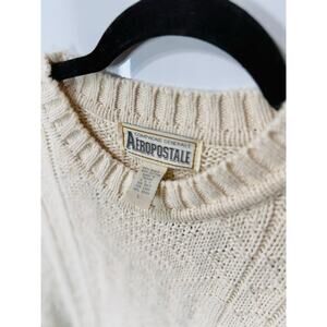 Aeropostale VTG Chunky Knit Sweater Cream Relaxed Casual Preppy Men's Size Large
