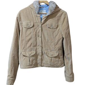 Aeropostale Vintage 90s Y2K Brown Faux Fur Collar Bomber Jacket Medium Preppy