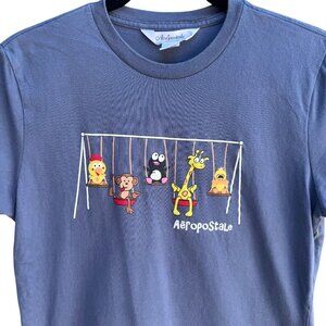 Aeropostale Vintage Y2K Babydoll Animal Swing Graphic Boyfriend Tee Blue Shirt M