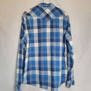 Aeropostale Western Pearl Snap Blue Plaid Long Sleeve Shirt. Men's size XL. 100% cotton. Has chest pockets with snap closure. In great preowned condition. Measurements are approximate and are shown in photos.