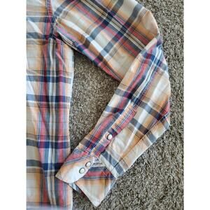 Aeropostale Western Pearl Snap Button Shirt Plaid Orange Blue Red Mens Large