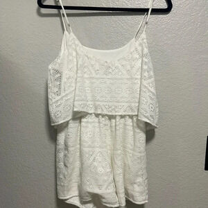 Aeropostale White Lace Overlay Short Romper with adjustable straps size medium