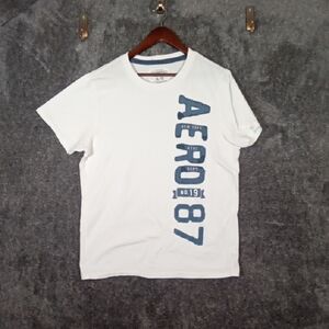 Aeropostale White and Blue Logo Tee Distressed Letters Mens XL 2011