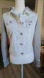 Chic jean jacket with a white body and gray sleeves. Perfect for casual outings. Has pink stain in the front that it's not noticeable, good condition, please double check the measurements in the pictures,