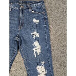 Aeropostale Womens Blue Distressed Denim Medium Wash Mom Jeans Size 10 Regular