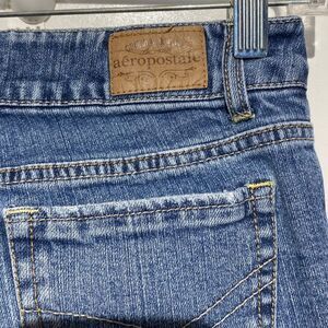 Aeropostale Women's Blue Whiskering Medium Wash Skinny Ankle Jeans Size 0 Long