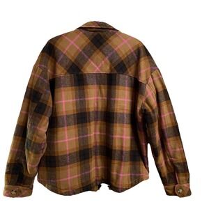 Aeropostale Women's Brown&Pink Plaid Shacket Flannel Jacket Lined Sz. XL EUC