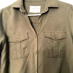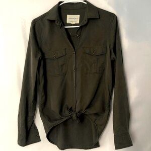 Aeropostale Women’s Classic Fit Long Sleeve Blouse Olive Button Up Green Size S
