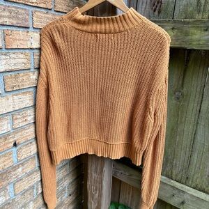 Cozy cowl neck sweater in a rich orange hue. Perfect for layering and casual wear.