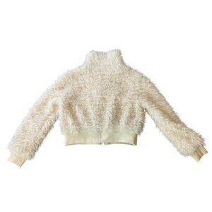 Aeropostale Womens Faux Fur Zip-Up Jacket Ivory Small
