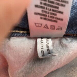 Leather patch on the back has worn away and tear in belt loops. Please see photos