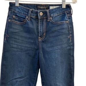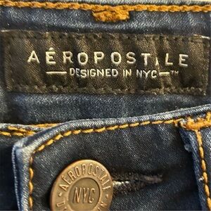 This Aeropostale jegging is designed for women, featuring a slim fit and mid-rise waist. Made from stretch denim, it offers comfort and flexibility. The jeans are in a dark blue wash with a 28-inch inseam and a 24-inch waist size. They have a zip closure and are in excellent pre-owned condition. Keywords: Aeropostale, jegging, women's jeans, slim fit, stretch denim, dark wash, mid-rise, size 0, blue jeans, pre-owned.