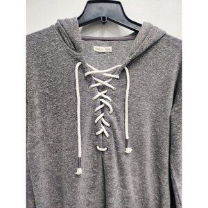Aeropostale Womens Hoodie Medium Gray French Terry Lace Up Pullover Preppy