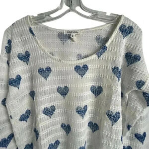 Aeropostale Women's M White Blue Heart Pullover Sweater Solid Pattern