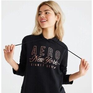 Aeropostale black hoodie in size Medium with metallic rose gold AERO New York graphic