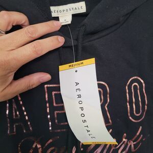 Aeropostale Women’s Medium Black Hoodie Metallic Rose Gold Logo NWT Comfortcore