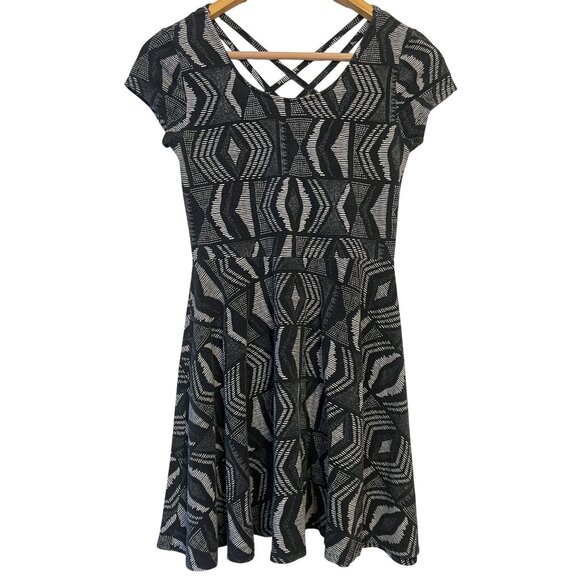 Aeropostale Women's Medium Black & White Geometric Boho Fit & Flare Mini Dress