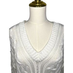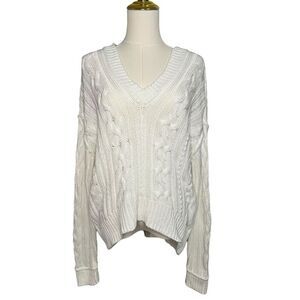 Aeropostale Women’s Medium Chunky Cable Knit Sweater Cream V-Neck Cotton Blend