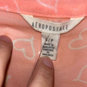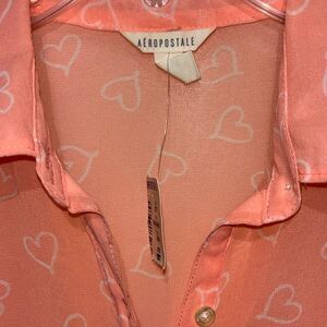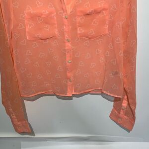 Aeropostale Women's Orange Heart Sheer Long Sleeve Button Up Shirt Small NWT