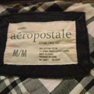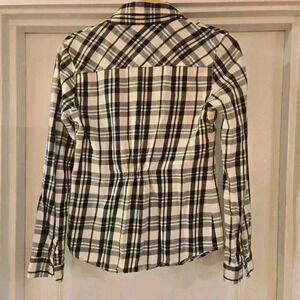 Aeropostale Womens Plaid Long Sleeve Button Down Shirt Black White Size Medium