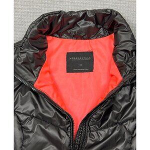 Aeropostale Womens Puffer Vest Black Coral Full Zip Pockets Size Medium