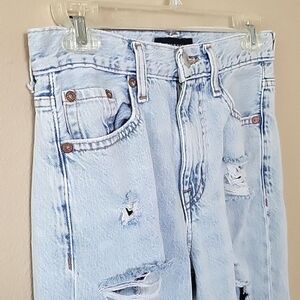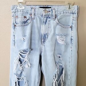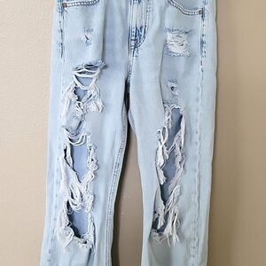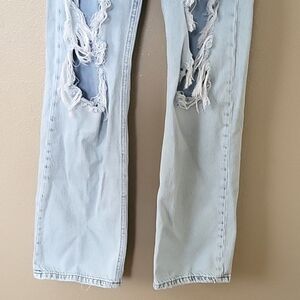 EUC Aeropostale womens light wash ripped 90s baggy denim jeans with pockets in front and back and full functioning zipper and button closure